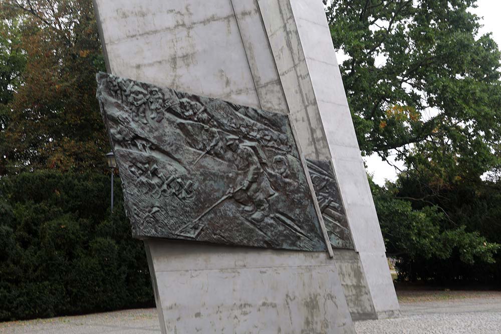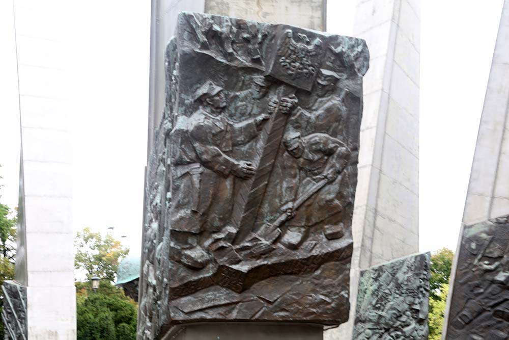 En el paso subterráneo bajo la calle Solec se encuentran grandes placas en relieve que amplían el relato del monumento. Estas representaciones muestran escenas del desminado, la reconstrucción de puentes y el trabajo colectivo de los zapadores en condiciones extremas. A nivel arquitectónico, este recurso introduce una dimensión narrativa que obliga al visitante a descender y recorrer físicamente la memoria histórica, transformando la experiencia en algo secuencial y casi pedagógico.