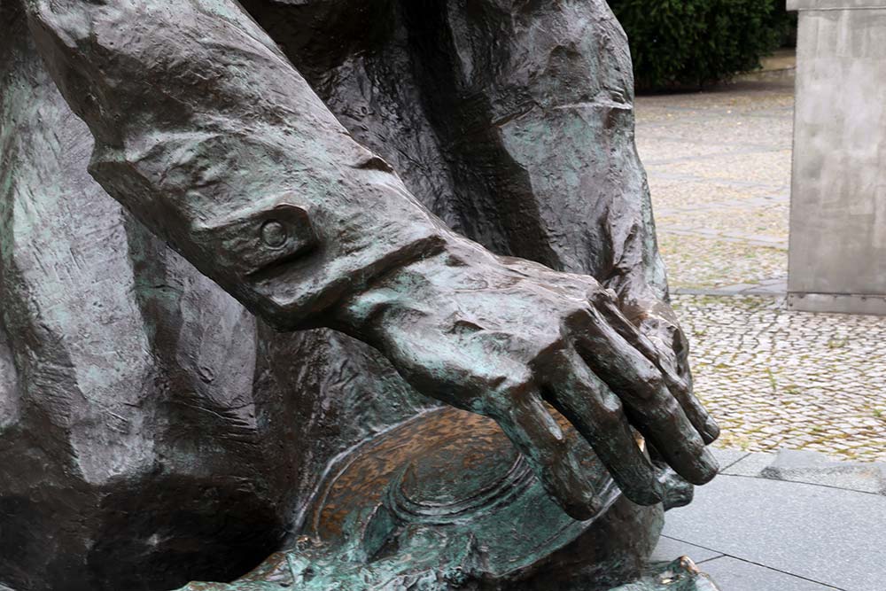 Cerca de la orilla del río Vístula se sitúa otro elemento del conjunto, un pilar de hormigón intervenido escultóricamente que simboliza la reconstrucción de los puentes destruidos. Esta pieza refuerza la conexión directa entre el monumento y la infraestructura urbana que los zapadores ayudaron a restituir. El agua del río, asociada históricamente a la identidad de Varsovia, actúa como telón de fondo de esta metáfora de reconstrucción y continuidad.